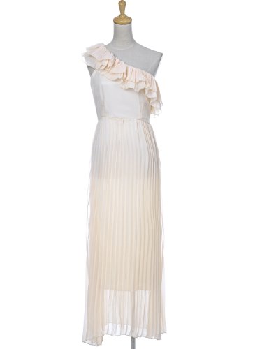 Anna-Kaci S/M Fit Off-White Frosting Pleated One Shoulder Ruffle Neckline Dress