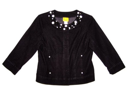 Ruby Rd Just Brilliant 3/4 Sleeve Embellished Snap Front Jacket Black Denim 18